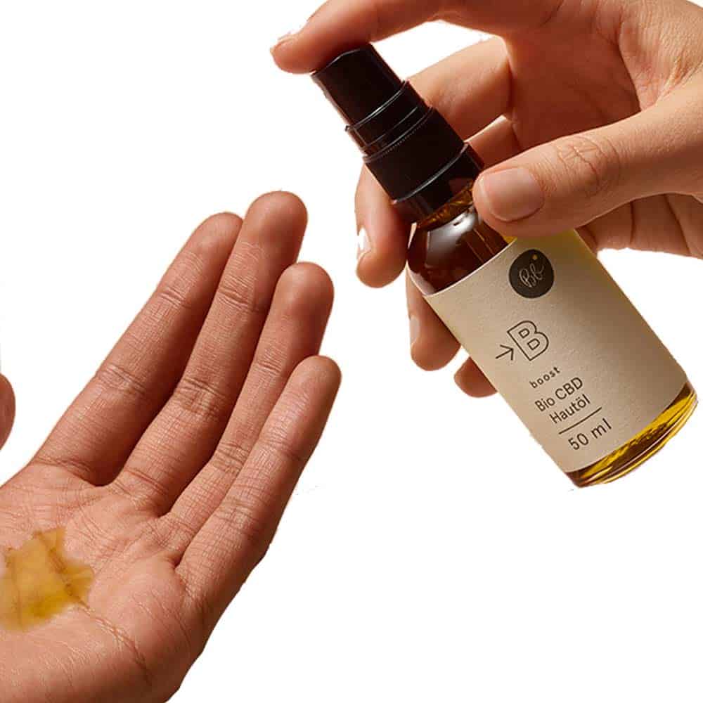Als Ergänzung zur täglichen Gesichtspflege wirkt das boost Bio CBD Hautöl von BioBloom aufgrund seiner speziellen Zusammensetzung aus CBD (Cannabidiol), Hanfterpenen, Hanf-, Jojoba- und Arganöl sowie Vitamin E besonders bei reifer, beanspruchter Gesichtshaut wie eine Frischzellenkur. Die Öle unterstützen aufgrund ihrer wertvollen Fettsäuren die Zellentwicklung und wirken als natürlicher Zellschutz (Anti Aging-Effekt). Eine unterstützende, orale Einnahme von CBD wird vom Hersteller empfohlen. Pro 50 ml Flasche des Bio CBD Hautöls sind ca. 1,5% CBD enthalten. Enthält unter 0,2% THC.